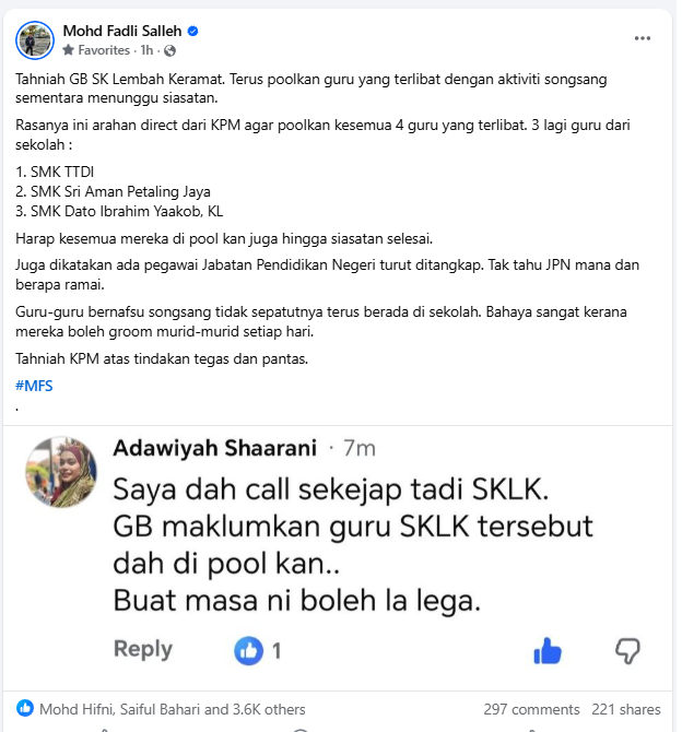 “KPM tidak berkompromi dengan perlakuan tidak bermoral ini. Siasatan dalaman sedang berjalan dan tindakan segera telah diambil,” kata kementerian itu.