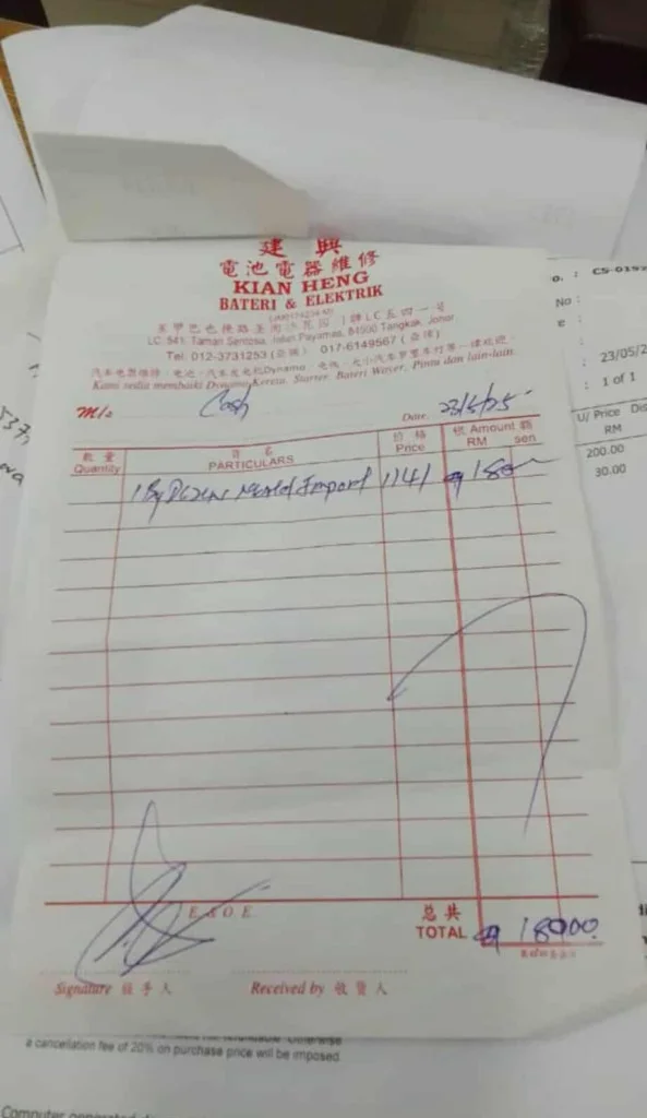 Seorang pemilik bengkel kereta di Malaysia, Lee Wei, berkongsi satu kejadian pelik (tapi betul-betul berlaku) dekat Facebook — melibatkan resit yang diubah suai oleh seorang pemandu lori.